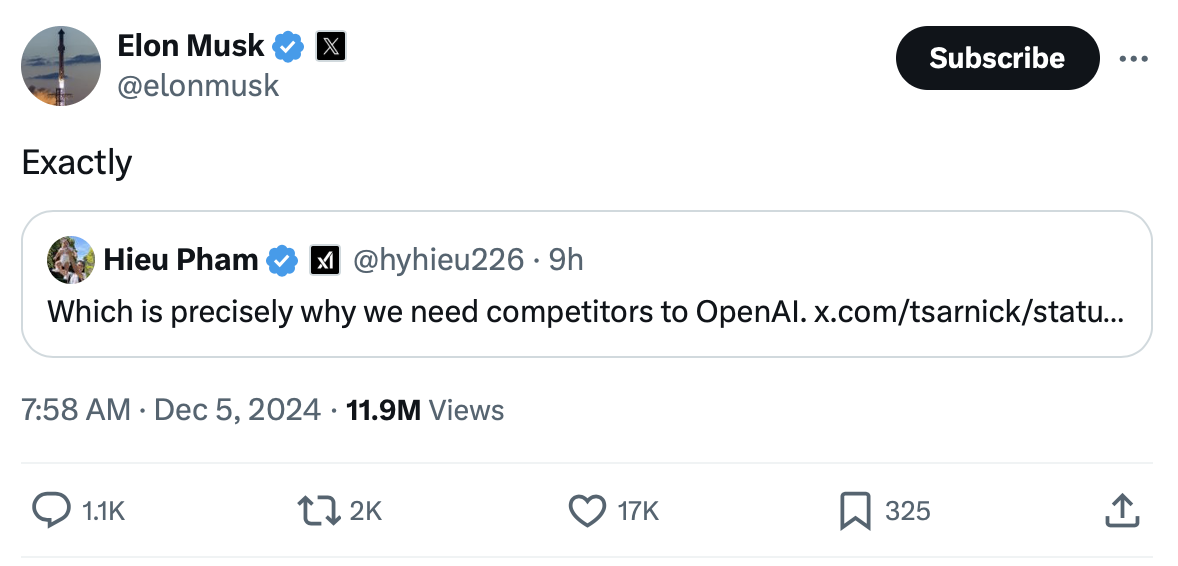 Then Musk demanded OpenAI go for-profit with Musk owning the company.