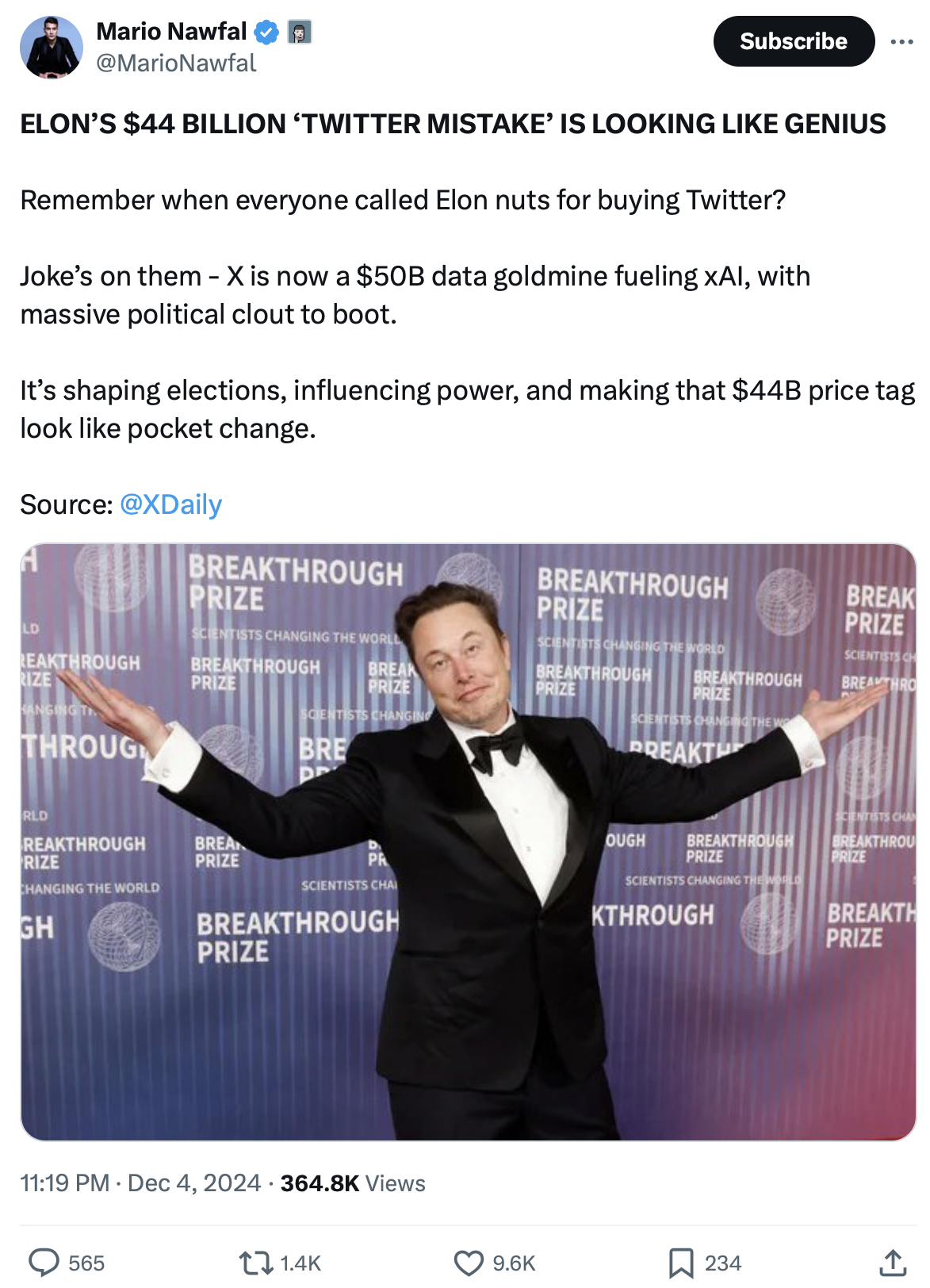 Large corporations (not just Musks, but also Microsoft, Google, and many others) using peoples creative content is both a massive invasion of privacy and violation of content creators copyrights.